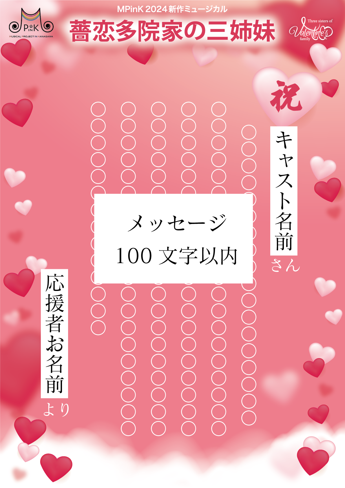 お客様からいただいた応援のしは公演期間中、劇場内に飾らせていただき、後日郵送させていただきます。